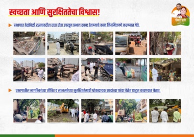 ƒ ƒ भागात वेळोवेळी र ावरील राडा रोडा उचलून भाग ठेव ाचे काम नय मतपणे कर ात येते. ƒ ƒ भागातील नाग रकां ा जी वत व मालम े ा सुर ततेसाठी धोकादायक झाडां ा फां ा वेळेत छाटन काढ ात येतात. ू