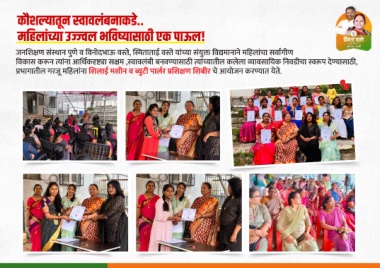 जन श ण सं ान पुणे व वनोदभाऊ व े, ताताई व े य ा संयु व मानाने म हल चा सव गीण वकास क न ना आ थक ा स म , ावलंबी बनव ासाठ ातील कलेला ावसा यक नवडीचा प दे ासाठ , भागातील गरजू म हल ना शलाई मशीन व ुटी पाल र श ण शबीर चे आयोजन कर ात येते.