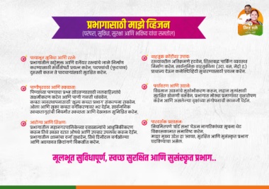 स मीकरण करने आ ण पाणी गळती थांबवेन. सुर त खेळणी बसवेन. भागात मो ा माणावर वृ ारोपण